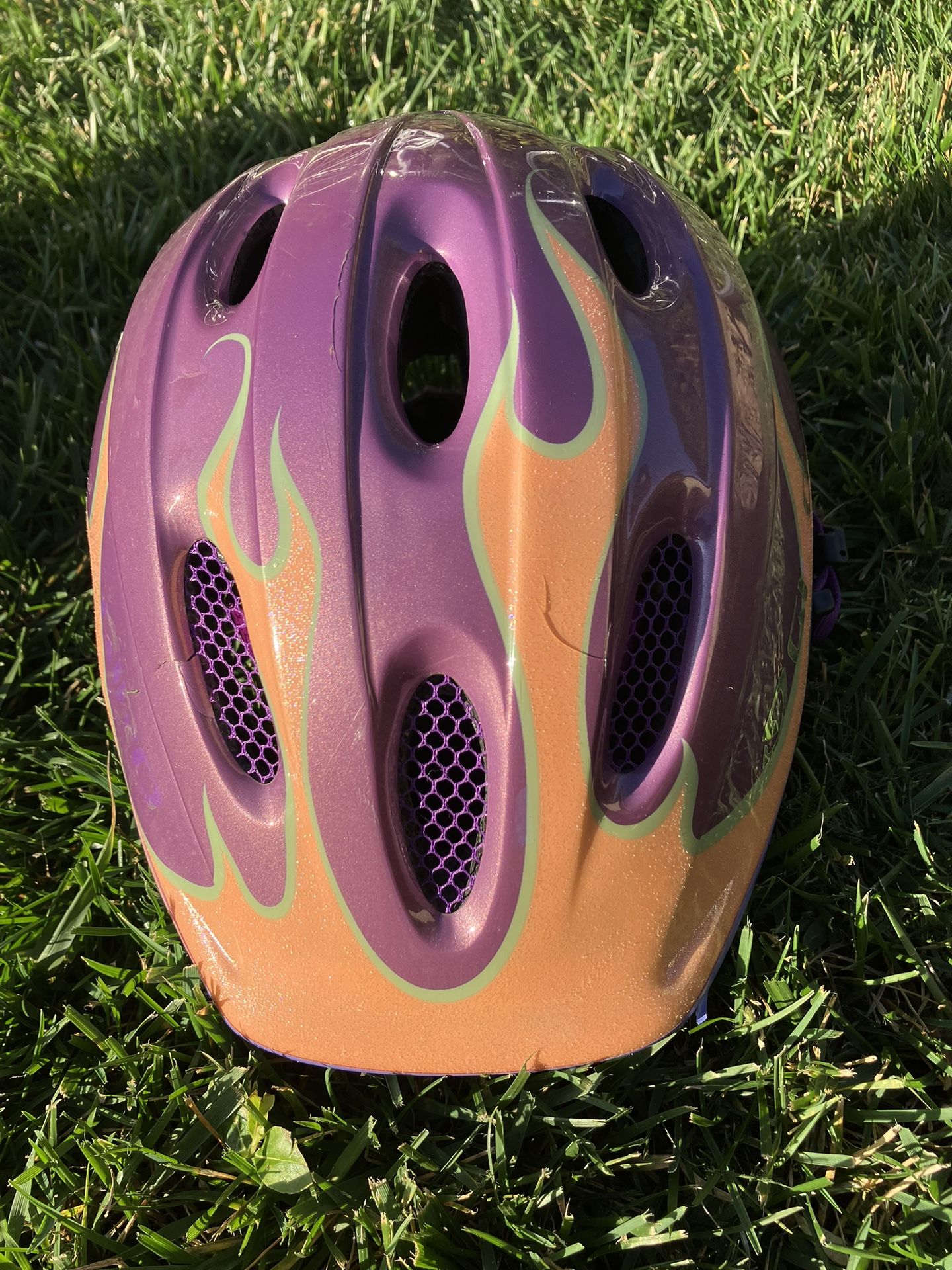 Giro Helmet - Purple/Orange Fire Design (Kids) Condition: Used, hence low price