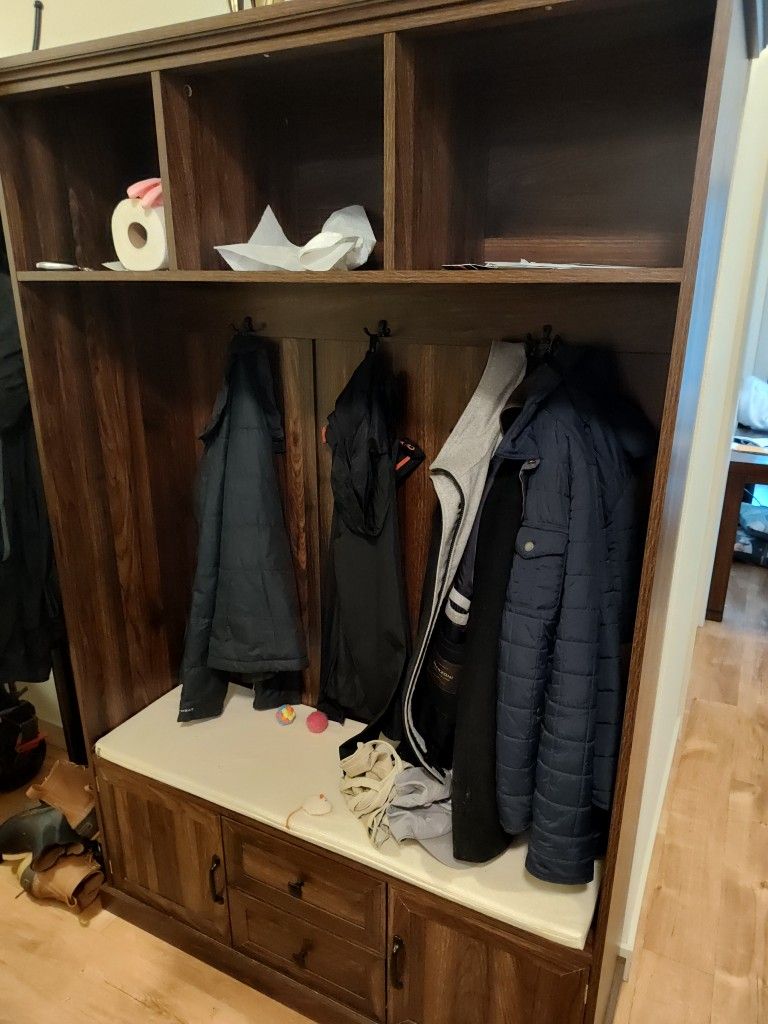 Please don't mind the coats and things, I'll clean it of course. Just needed to get the item listed since I am moving very soon. It's in great condition.