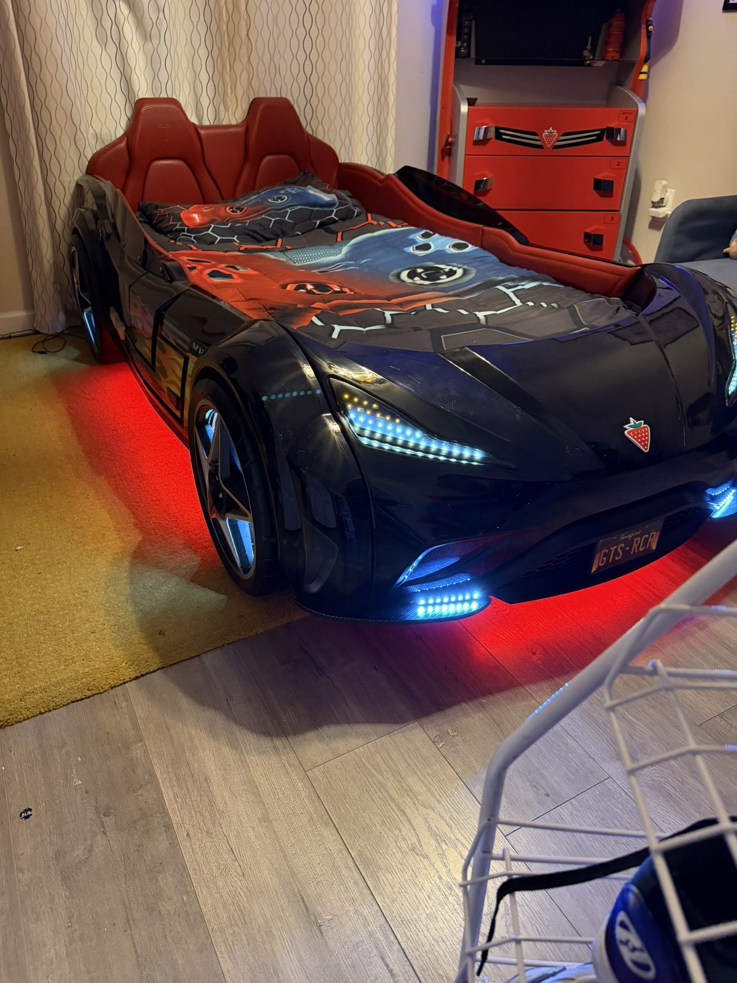 Awesome race car for your kid! Excellent condition. Lights and remote control. Are you ready to make your kid happy? Just do it! Mattress is not included. Only serious inquires please.
