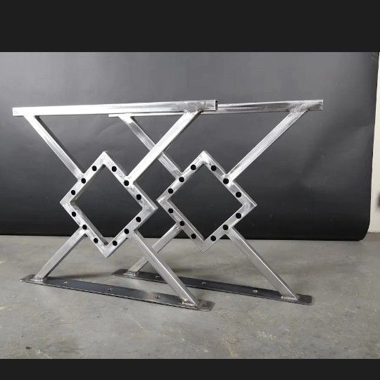 These are custom built,solid steel,fully welded table legs ready to paint or powder coat