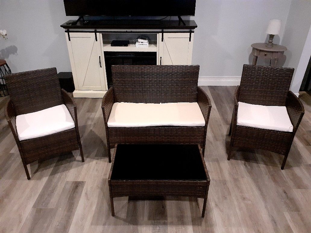 One year old patio set selling because we bought a white set. This set is in perfect condition