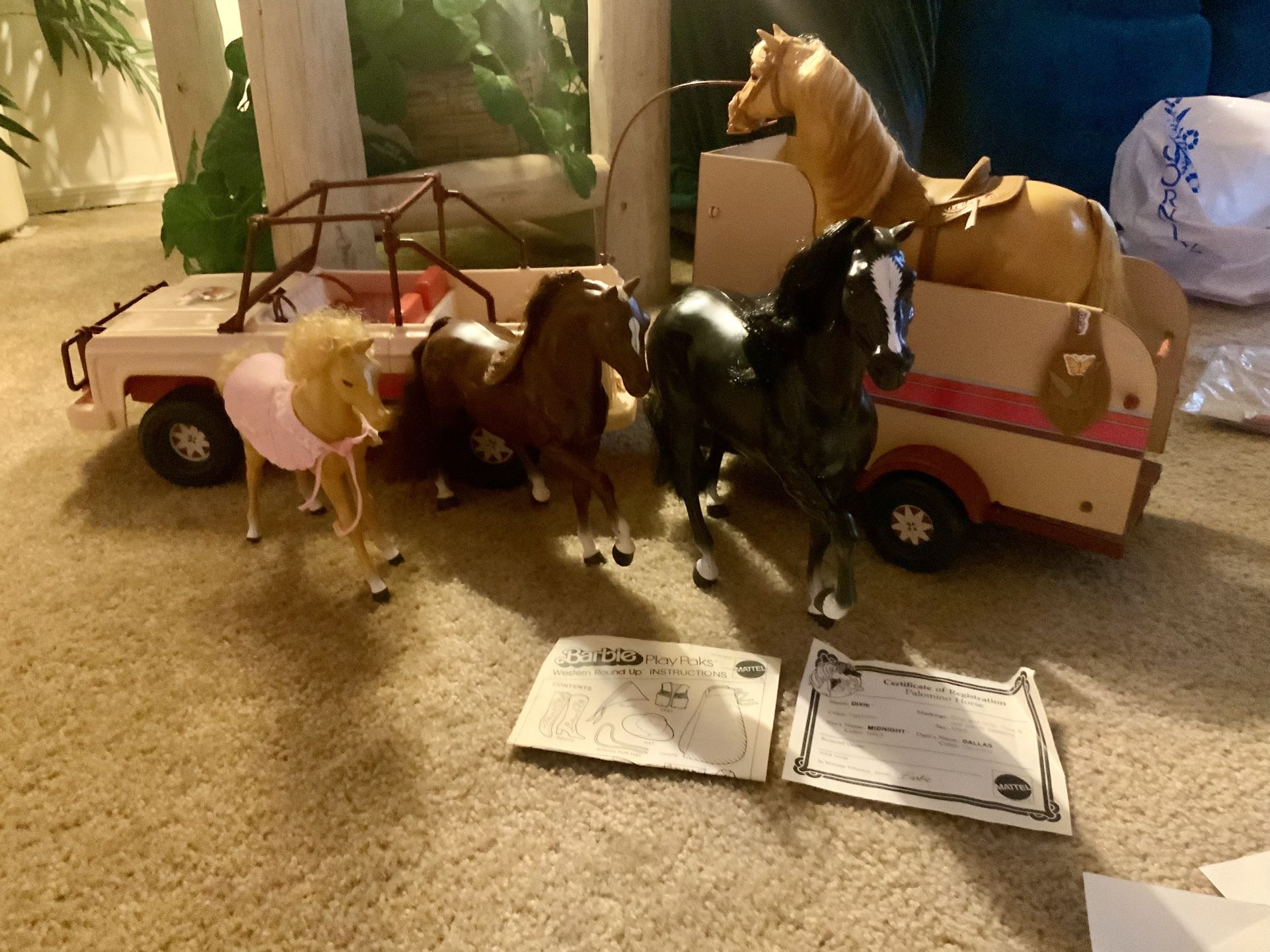 Vintage Barbie Travelin’ Jeep & Horse Trailer + 4 Horses