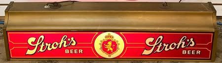 - Used - Rare Vintage Stroh's Pool Table Ceiling Hanging Lamp - All light sockets are working (refer to photos, bulbs moved around to verify each socket is working) - Approx. 39 L "x 9" H x 9" D - FL/A/D9-18780-3-BJ