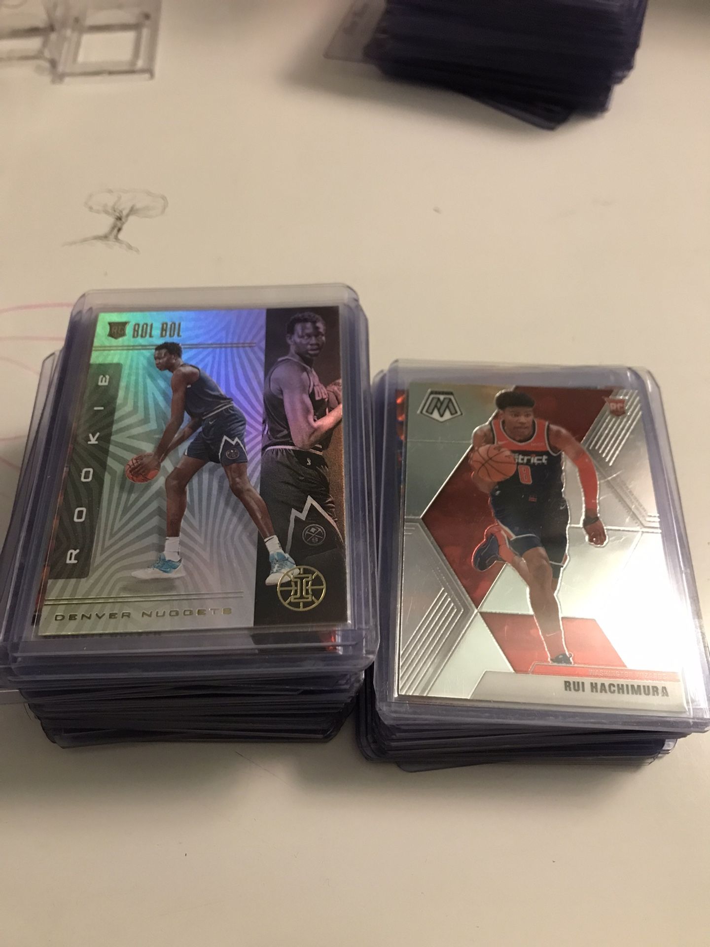 60 cards Mosaic and illusions Bunch of Rookies and parallels From Walmart and target blasters and megas Selling all of them for 120$ That’s 1$ each card You can easy sell each card for more but I’m lazy and neee to clear space. Sorry no Zion or Ja morrant in this bulk Feel free to come look threw them before you buy All sleeve and top loaded All great condition