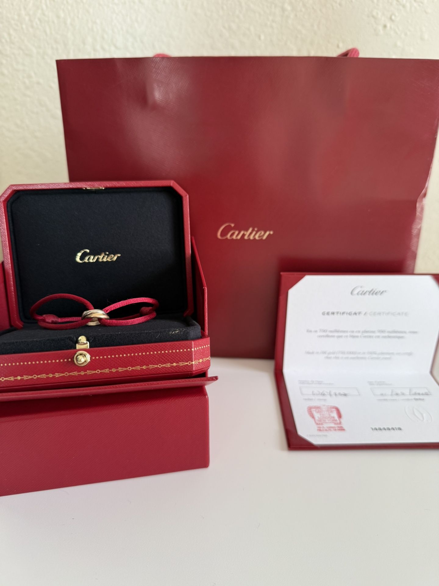 I bought this bracelet directly from Cartier and comes with the box, certificate of authenticity, and receipt. I’m selling it because I do not use it. The bracelet currently sits on a red cord but can be changed to other colors for FREE at a Cartier boutique. I bought the bracelet for $971 and it now retails for over $1,080! The colors available are: - Black - Navy Blue - Emerald Green - Baby Pink - Red (as shown) - Gold