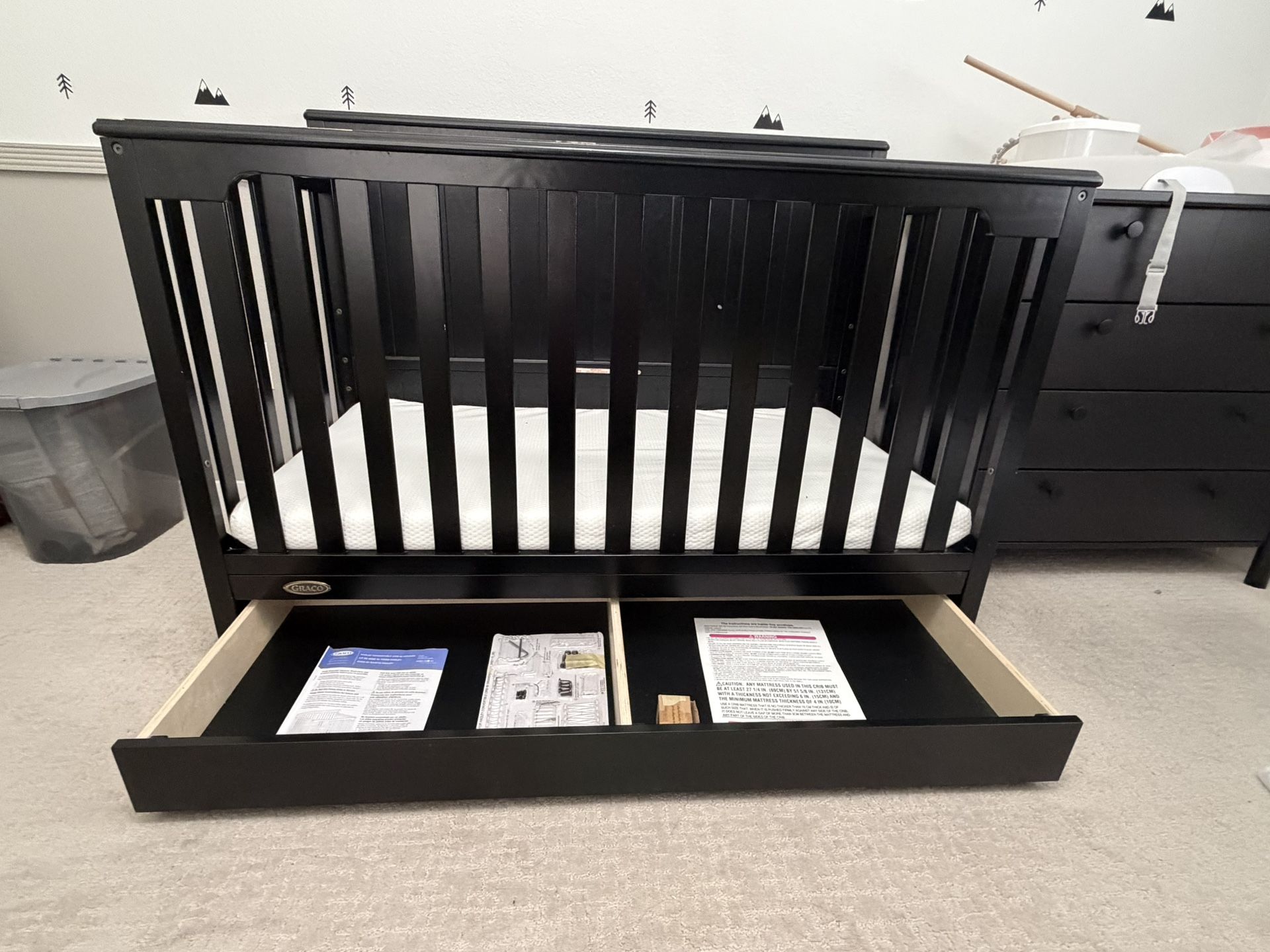 Graco Hadley Convertible Crib - Black + Graco Foam Mattress + Protector