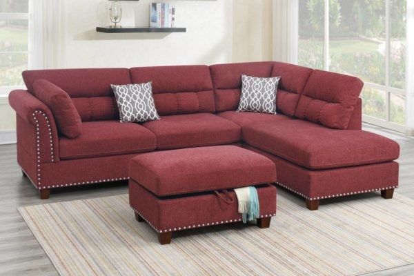 ❌🚫 We do not have a showroom. We deliver directly from the manufacturer to your home 🏠. 🚚 Delivery is only $40 🛠️ Assembly is an extra charge. Price on assembly depends on which item you order! 💵 We accept cash on delivery Mattresses are sold separately 🥇We are voted #1 on offer up, please also view other options on our page!!! Enjoy a star studded affair with this 3-piece sectional sofa set covered in velvety smooth fabric. Trimmed in a nickel-finish studding, the tightly upholstered unit includes a reversible chaise, cocktail storage ottoman and two accent pillows. Available in slate, tan and paprika red. Item # F6419 Materials: Paprika Red Velvet Fabric Dimensions: 107″ x 76″ Reversible Chaise 35″ x 73″ x 37″H , 2 Seat Sofa 76″ x 34″ x 76″H, Ottoman w/ Storage 25″ x 35″ x 19″H Some Assembly Required