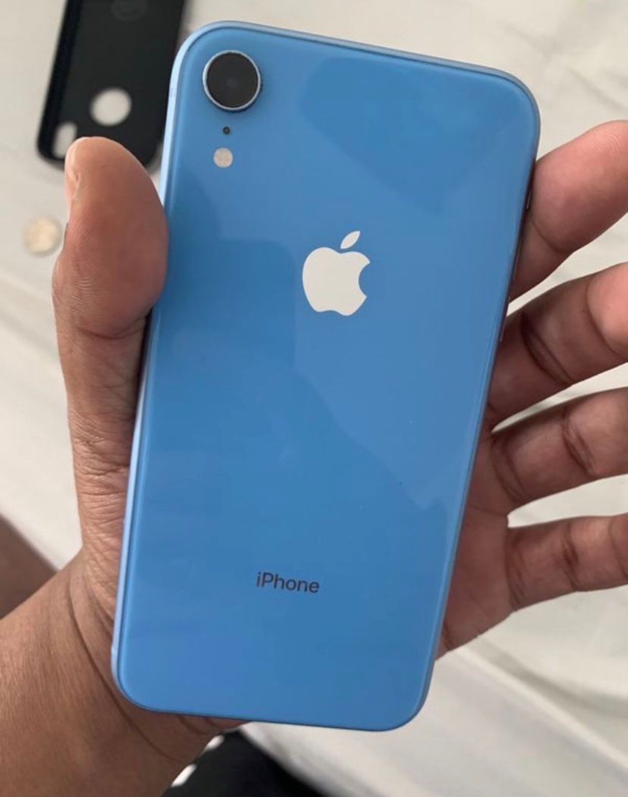 Blue iPhone xr, its come with lighting cable charger, air pod and box. The phone is unlocked and comprise of 128gigs.