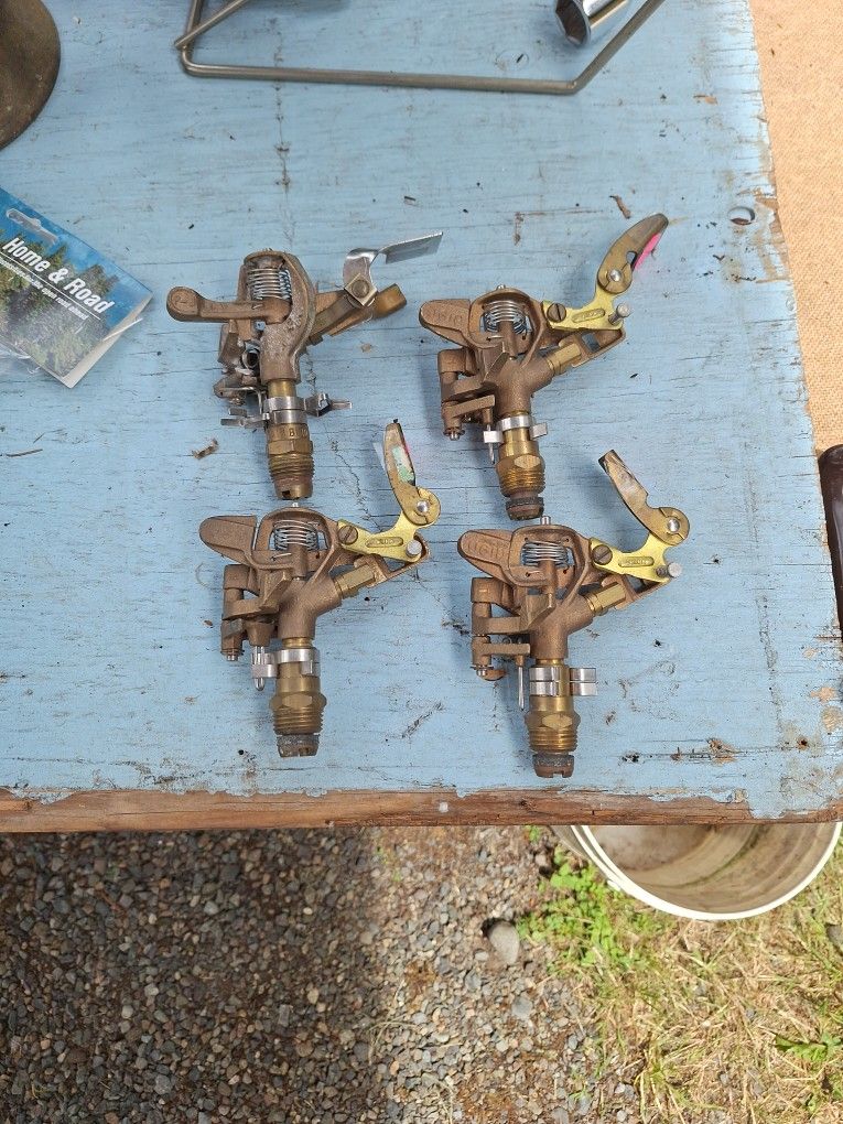 4 Vintage Brass Sprinkle Heads, 3 Rain Trol, 1 Rain Bird.