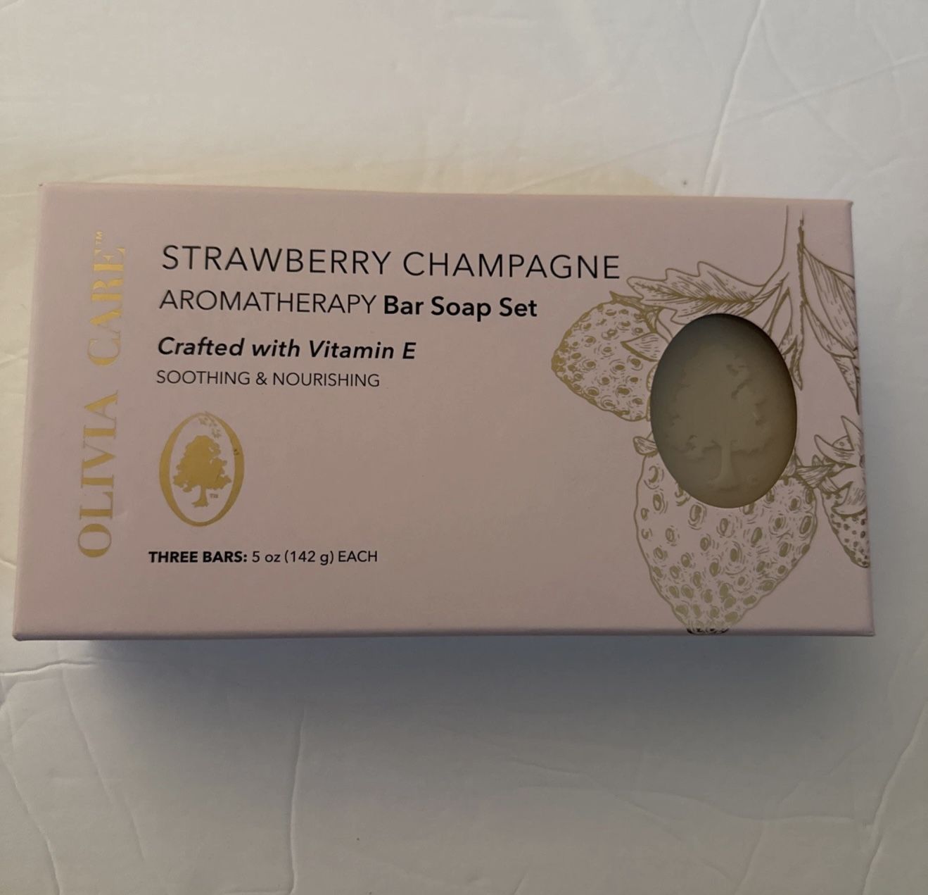 New Olivia Care Boxed Bar Soap 3 x 5oz Strawberry Champagne Aromatherapy Vit E