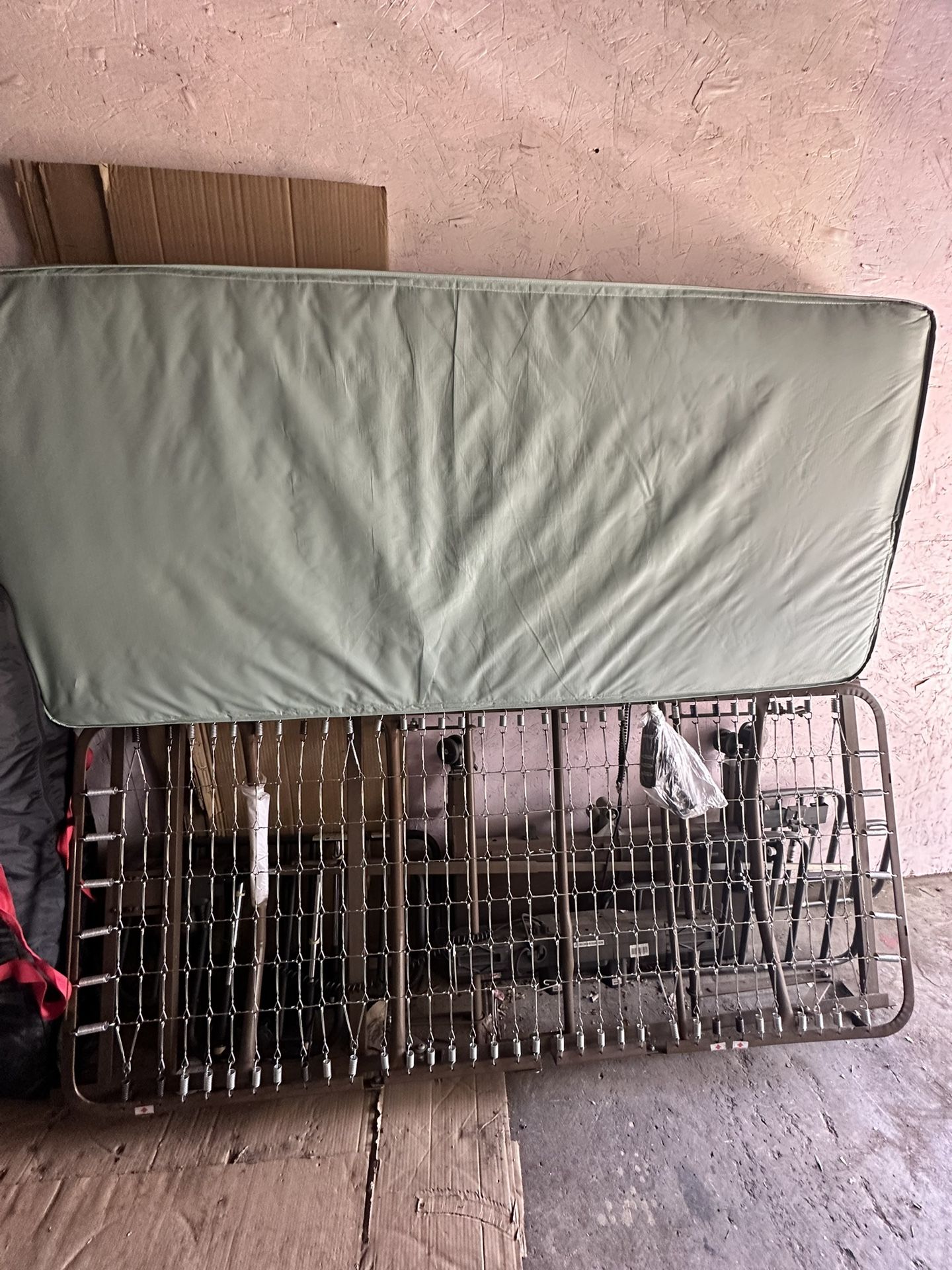 Electric adjustable hospital bed in working condition. Bed raises and lowers for head and body positioning using controls. Previously used for home care. Good for elderly care, recovery, or medical needs.
