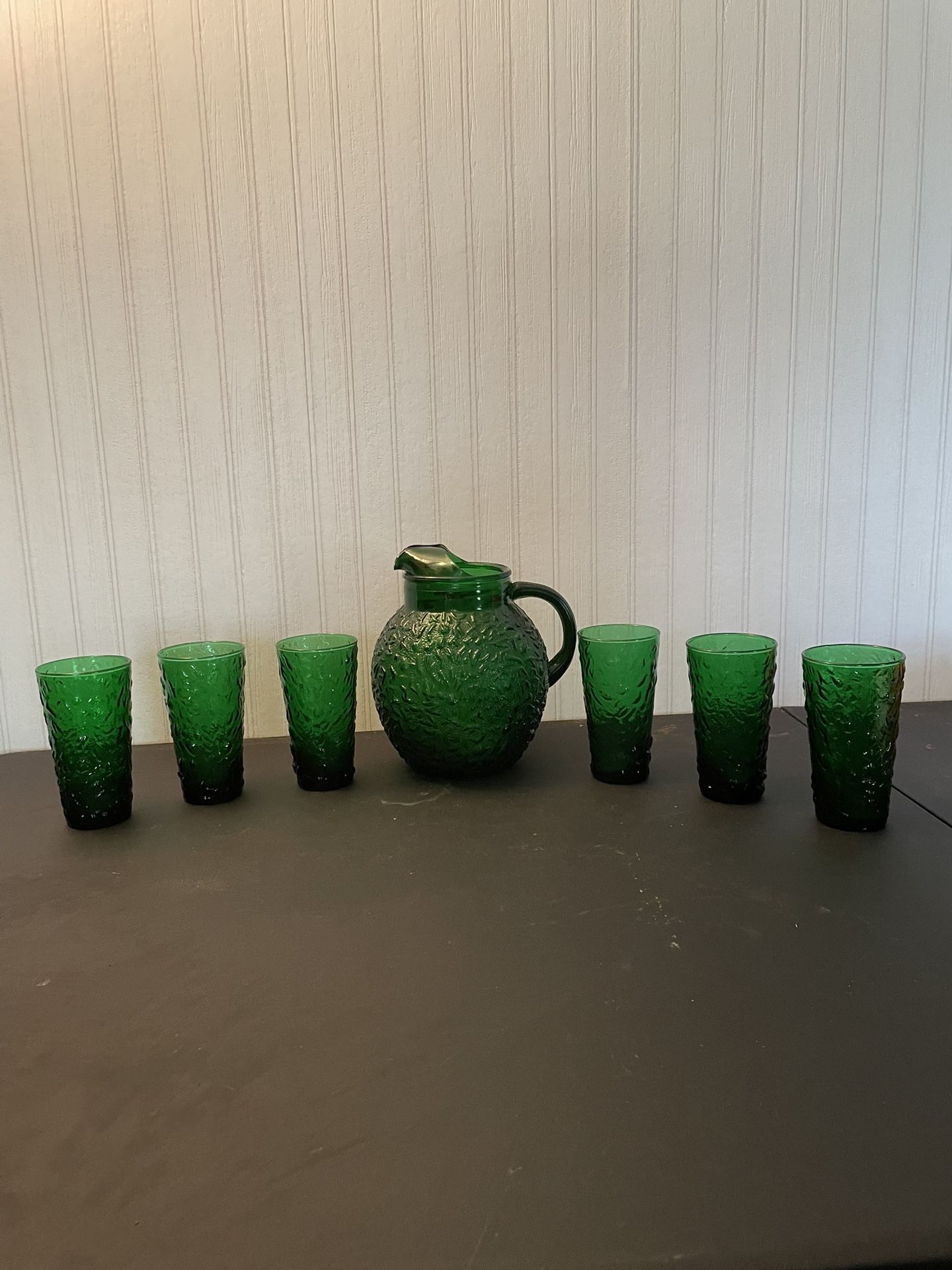 Antique Green Anchor Hocking Pitcher & 6 Glasses All For 60