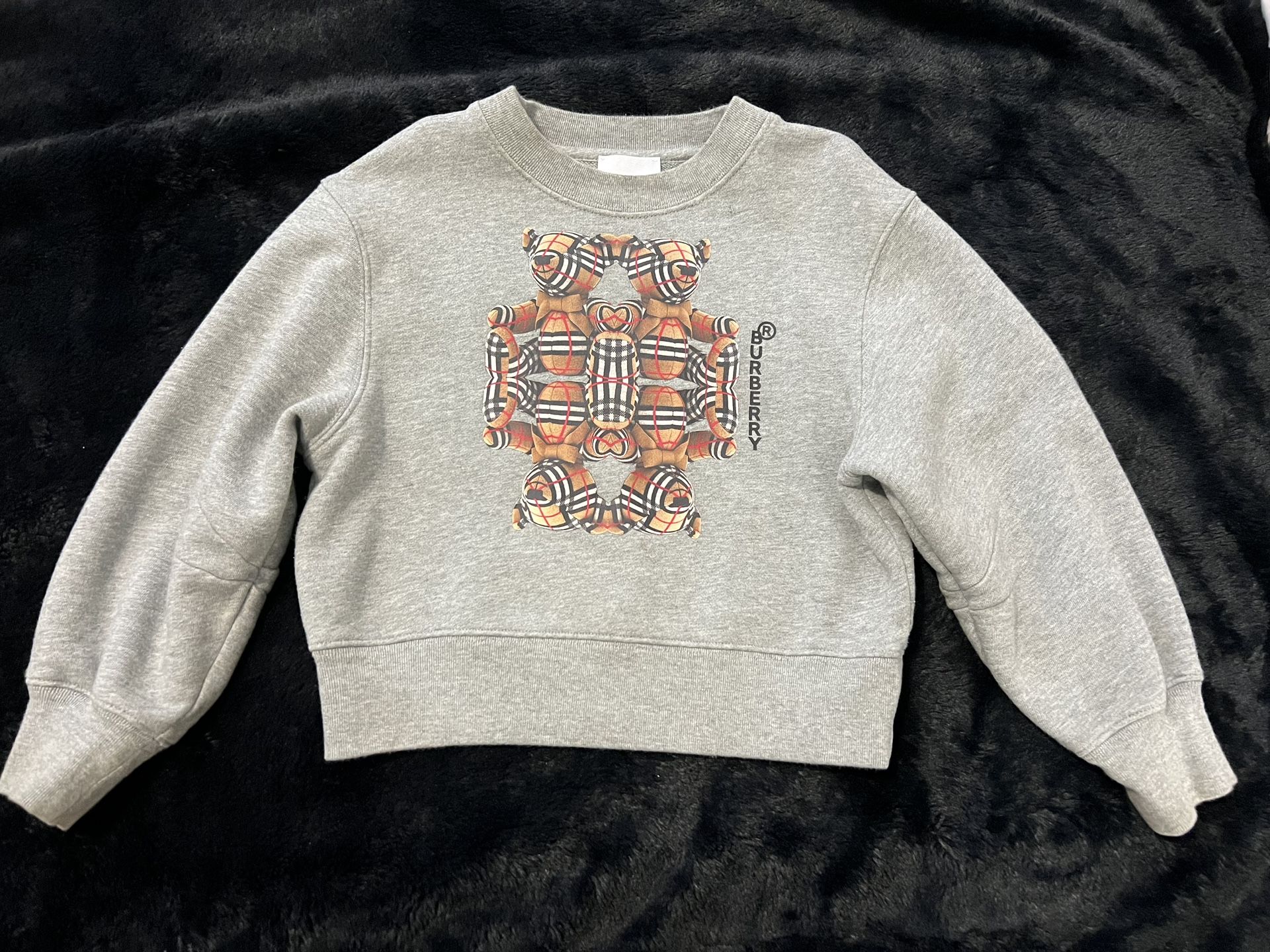 Burberry toddler sweatshirt. New condition. Color is gray with Burberry Thomas bear with iconic Burberry print. Size is a 6Y but more like a 4y. Unisex.