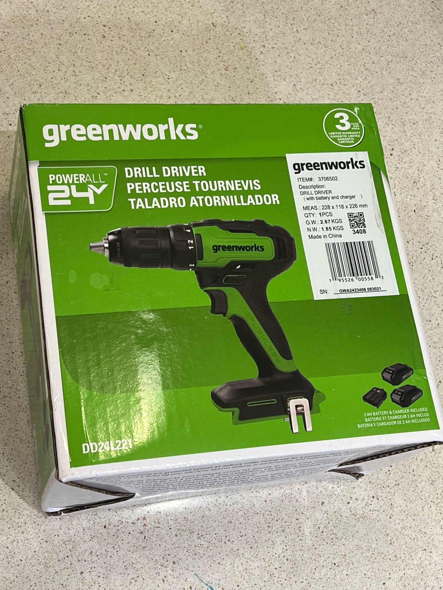 BRAND NEW Sealed Greenworks 24V BRUSHLESS 1/2" DRILL driver KIT W/ (2) 2AH BATTERIES AND CHARGER