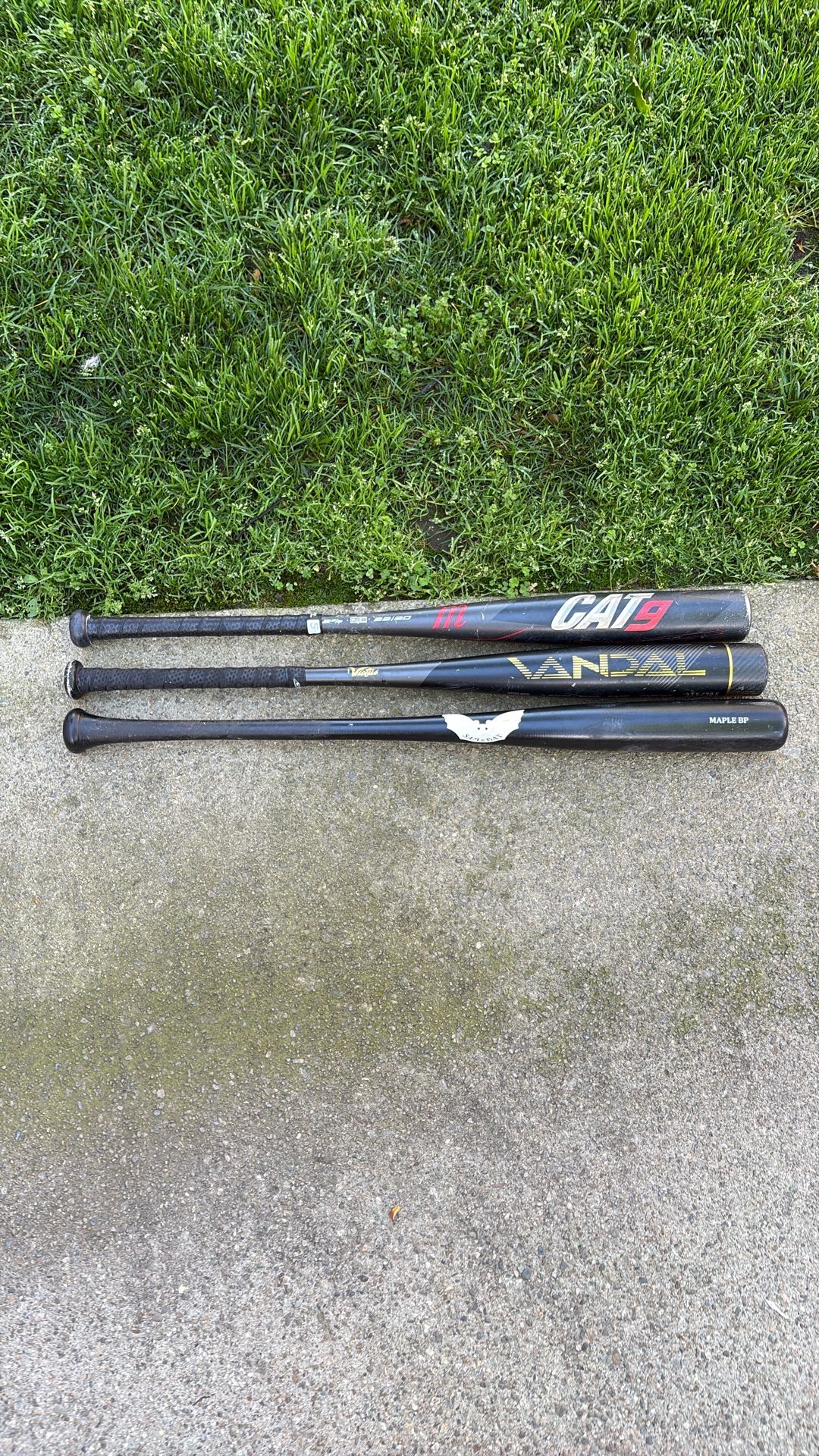 Used Marruci Cat 9 Baseball Bat-33in ($50) Used Victus Vandal-33.5in ($35) SOLDUsed San Bat Maple BP-34in ($20)SOLD FOR BOTH- $55