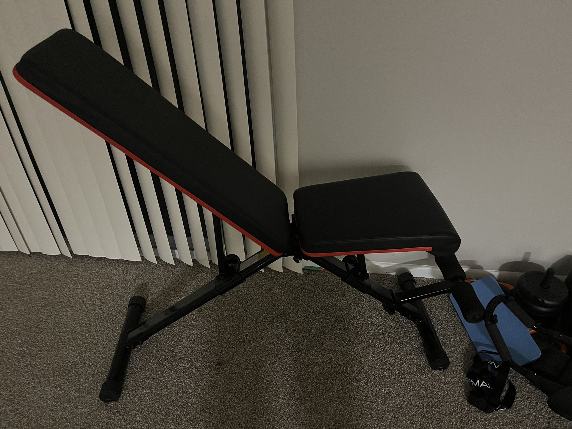 The bench has only be use twice, it is fully adjustable and sturdy. The weights contain four 4.5lbs, four 3.5, and four 2.5. Can be made into a barbells, kettle bells, and dumbbells. I’m moving soon and need them gone asap.