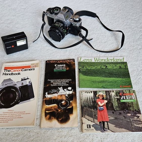 Cannon AE1 Program 35mm Camera And Lenses Cannon FD 50mm/1.8 lense Star-D 28mm/2.8 lense - wide angle Sears 80-200mm/1.8 zoom lense Vivitar 28-210mm/3.5/5.6 wide angle zoom. Excellent condition Pick up: Bothell, Mill Creek, Woodinville, South Everett, Tumwater, or Olympia area 💲💲Cash only looking for a reasonable offer