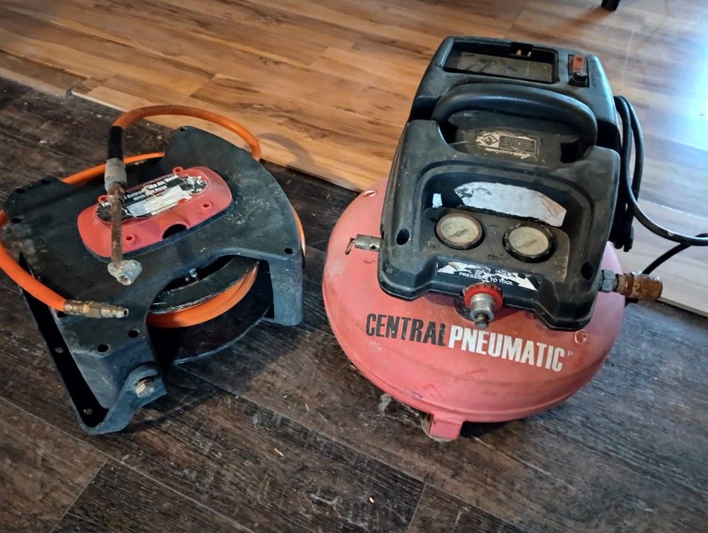 Central pneumatic air compressor & 26 Ft Retractable Air Hose
