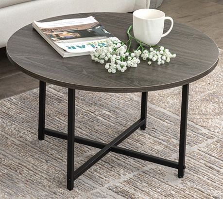 French Oak/ Gray Round Coffee Table