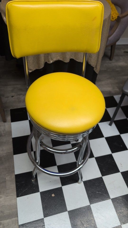 This yellow swivel chair is designed for high top counters and tables. 2x available