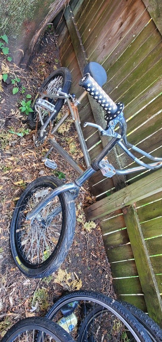 This is been sitting for years! Can be restored in many ways. One of the rarest 80's BMX FREESTYLE bikes ever! It also has original Skyway EZ handlebars on it worth another $250-$300. Selling as is! Pretty firm on price. I know what they go for and they are almost extinct on searches for sale without paying $2000.00