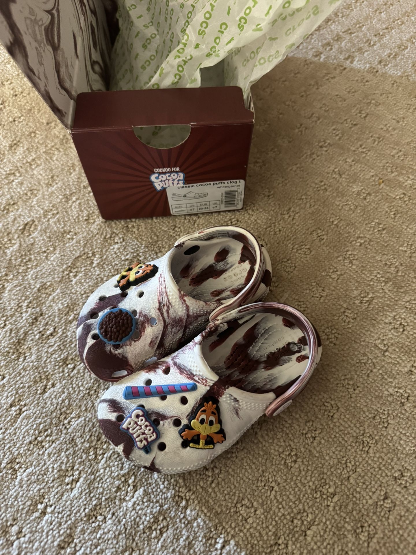 Special Edition Cocoa Puff Crocs (Size 7c) They come in the original box, and they have been gently worn.