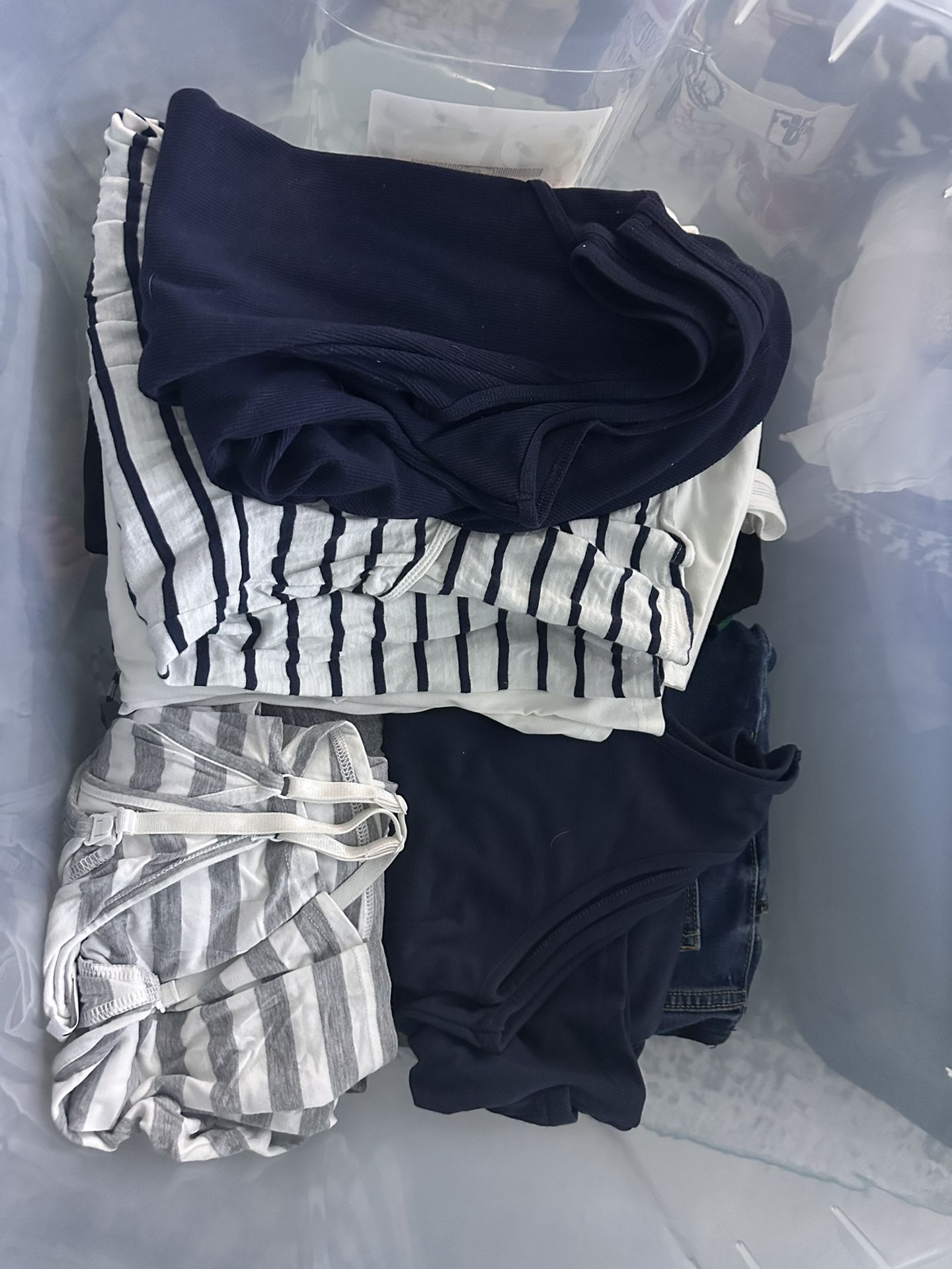 Various t-shirts, nursing tops, a bikini bathing suit, tank tops and jeans. Tops are a size L and jeans a size 12. Some Old Navy clothes. Gently used, my loss your gain.