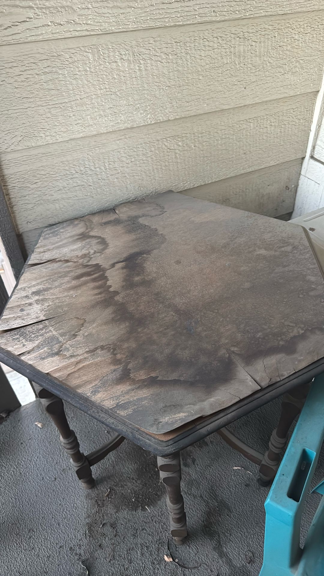 This was my grandmothers I dont know much about it but its very old Has a few scratches on top and beautiful grains of wood on the top as well. If you zoom in on the picture it looks like a face