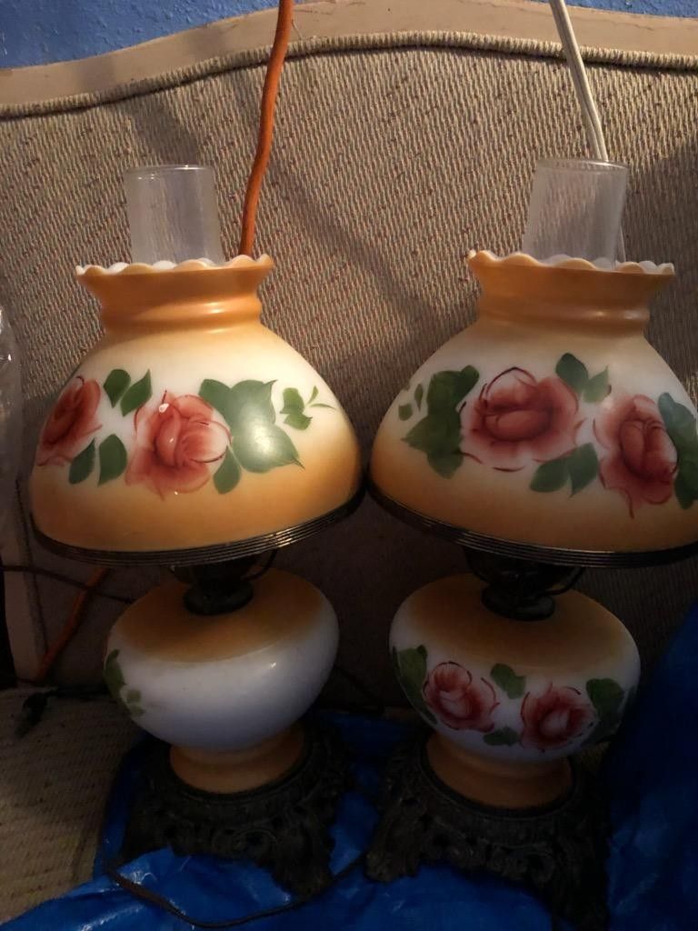Beautiful Lamps Deleted by Mistake 100.00 for set .. VintageHurricane Lamps. Top and Bottom Light up.