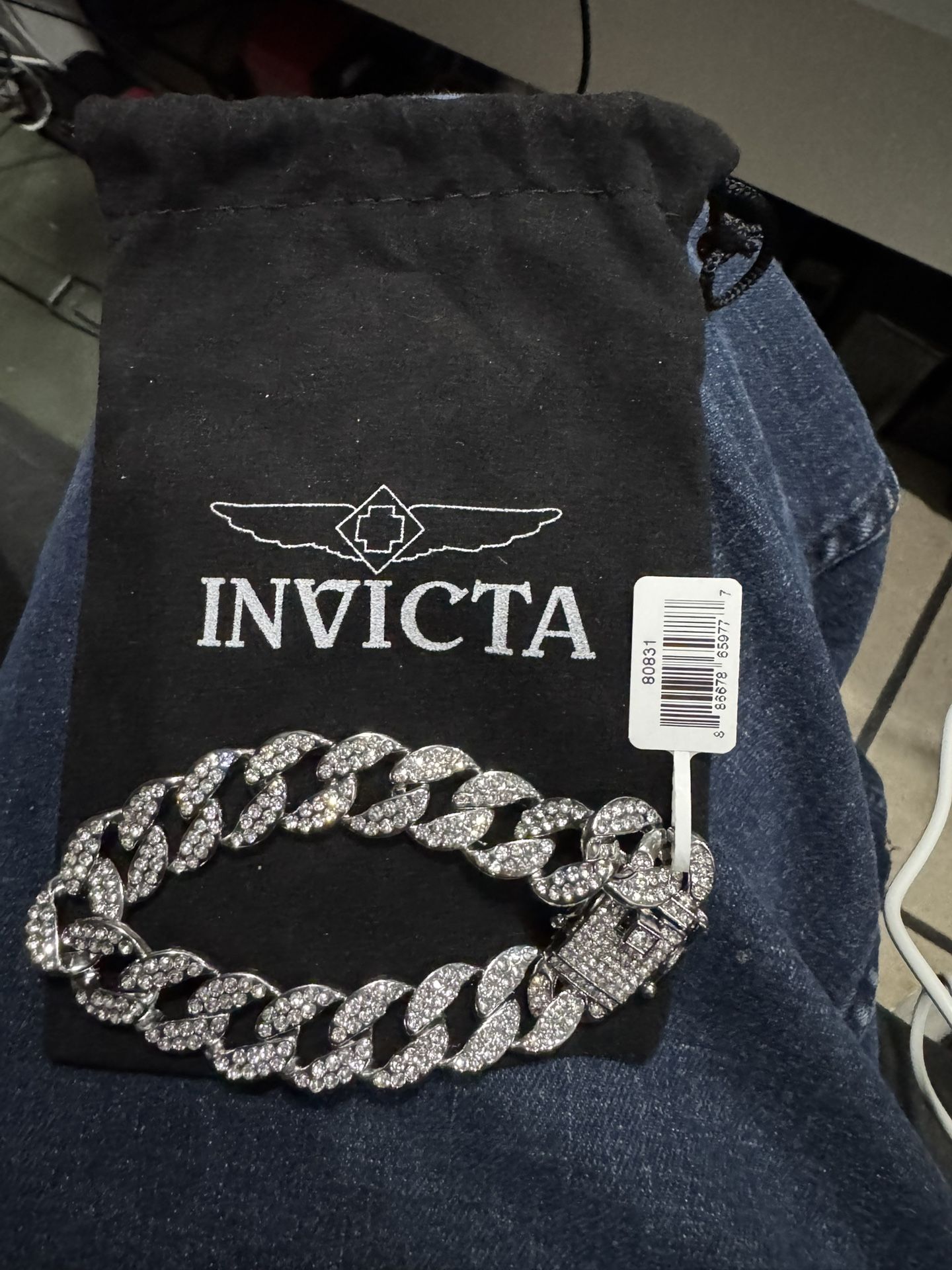 π Invicta Elements Men's Iced out Cuban Chain Bracelet, Silver (80831)