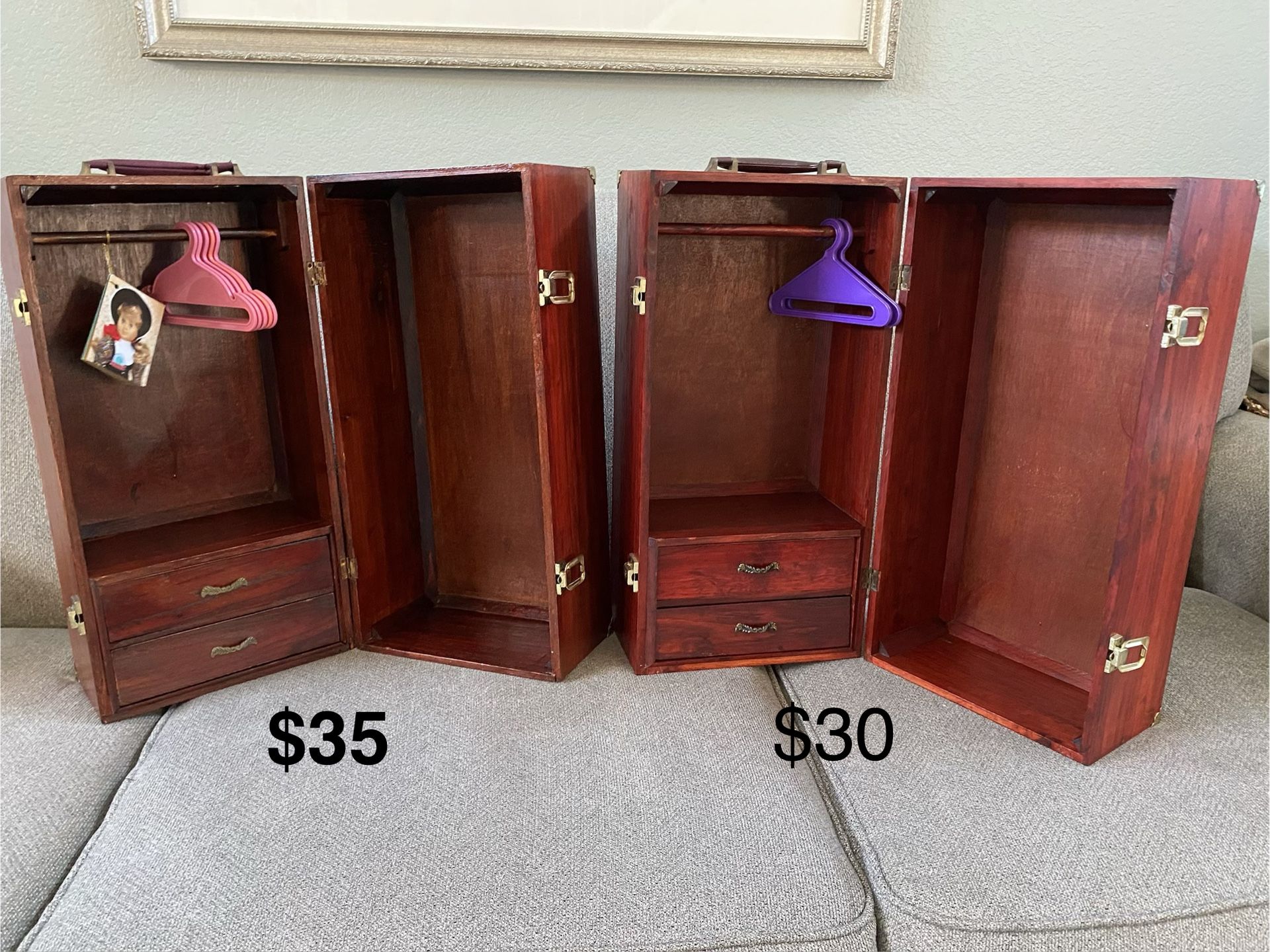2 18” Doll Armoire/ Wardrobe/ Carrier For American Girl Dolls & Others