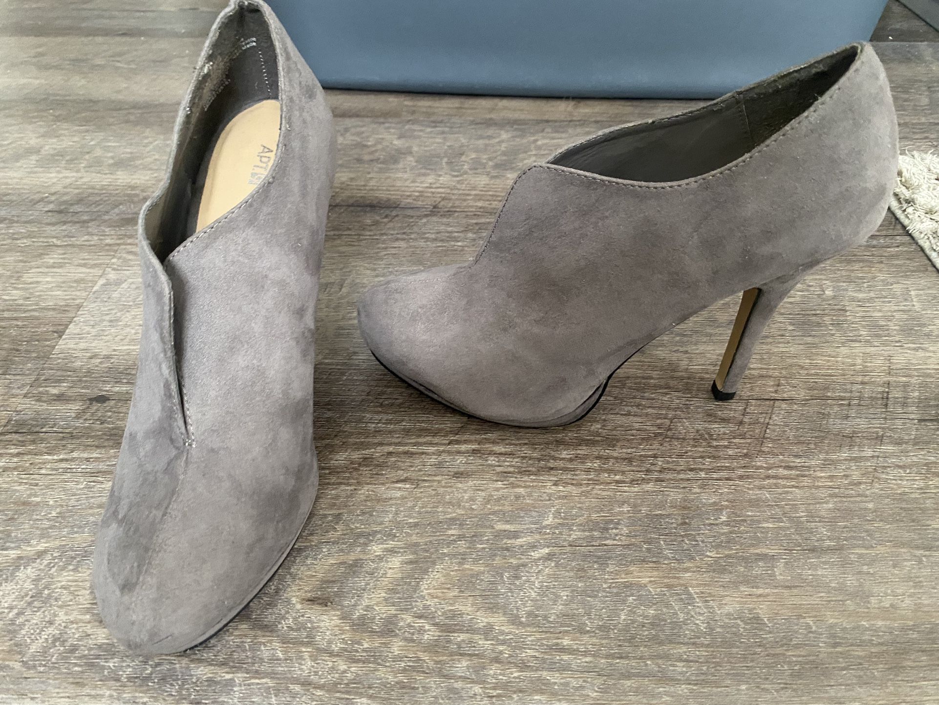 Gray suede heels