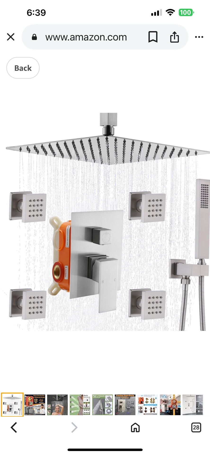 Rain Shower System with Body Jets, 12" Ceiling Rain Shower, All Metal Multiple Black 14B And The Nickel 14L $80