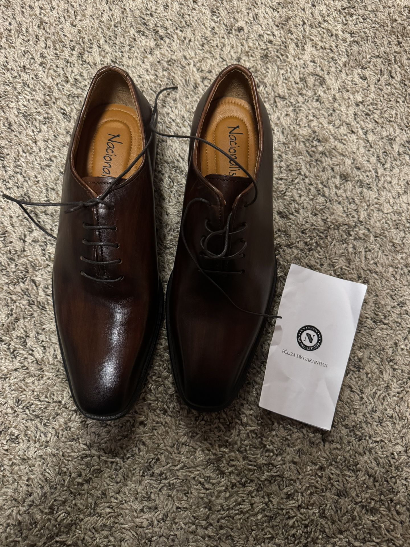 Hand made, brown genuine leather shoes Bough in Mexico and they fit a little big Size 9 I can ship shoes upon request Brand new