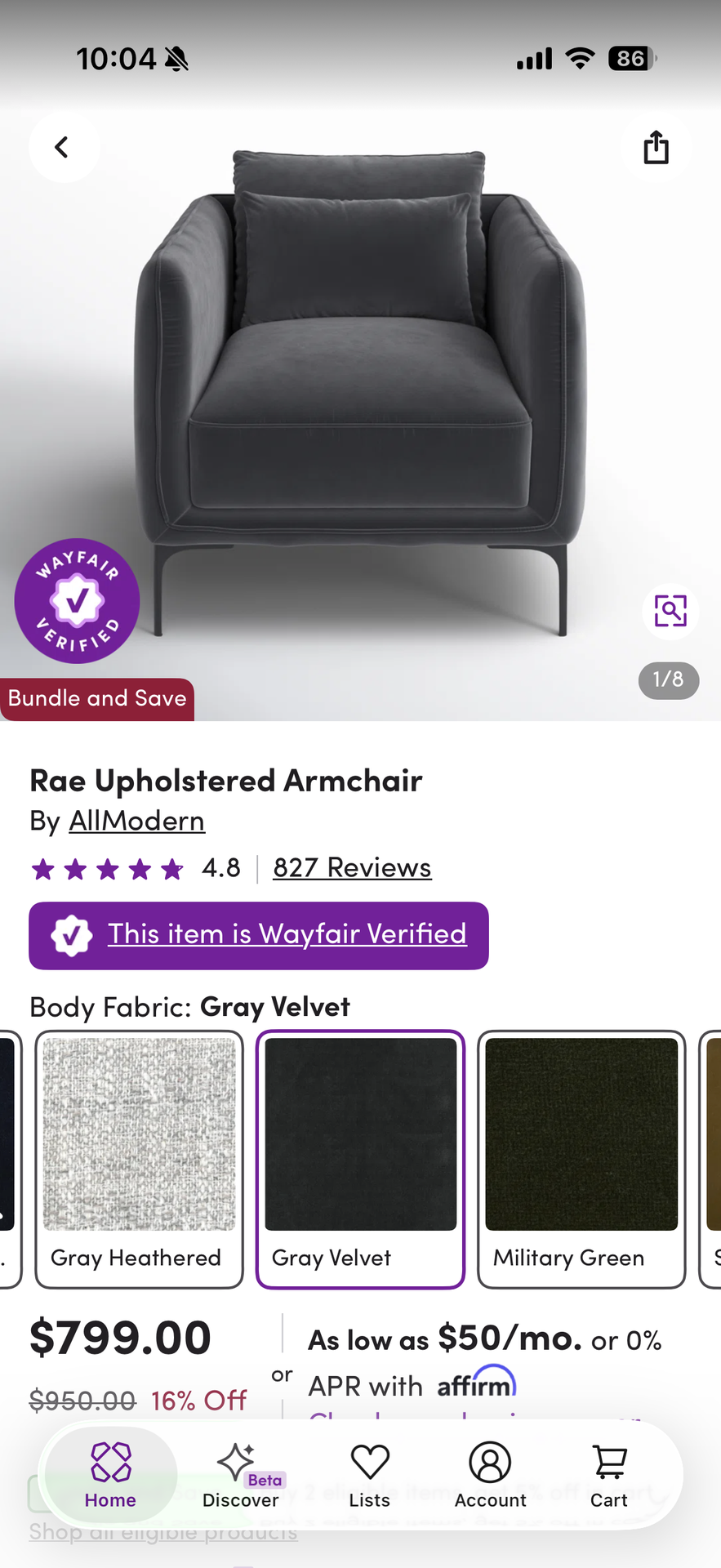 Brand new Wayfair Rae Armchair in Dark Gray Velvet. Asking for $400. Everything is still in the packaging.
