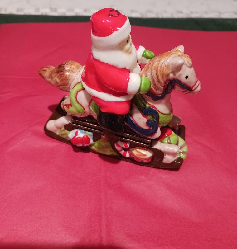 Vintage Kurt S Adler "Santa Claus On Rocking Horse" Porcelain Hinged Trinket Box. Can Be Used As A Trinket Box Or Jewelry Box. Measures 4" Tall. 4" Long. Made In Taiwan