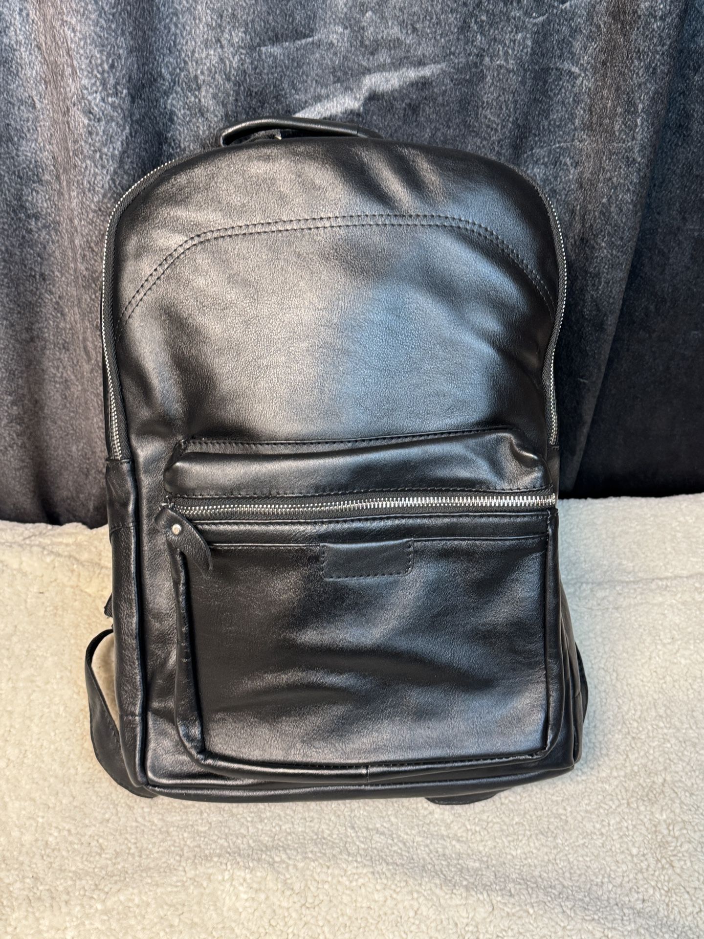 This brand new genuine leather backpack is made from pure, high-quality leather in a classic black color, offering a clean and modern look ideal for work, travel, or everyday use. The spacious interior features a soft durable lining with organized compartments designed to hold a laptop, documents, and daily essentials securely. Smooth heavy-duty zippers, reinforced stitching, and solid metal hardware ensure long-lasting durability and reliable performance. Designed with adjustable padded shoulder straps and a top carry handle, this backpack provides comfort, versatility, and a premium feel throughout daily wear. Please review all photos carefully for exact color, leather texture, and details, as lighting may slightly affect appearance.