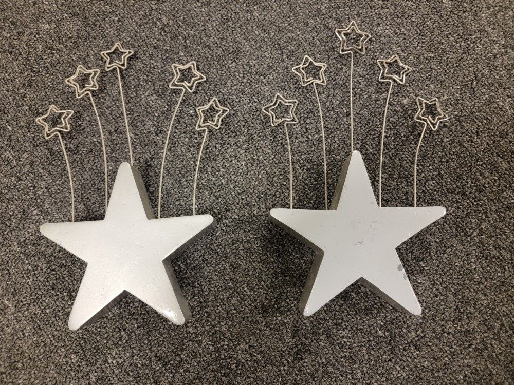 Lot of 2 Star Picture Holder Prom Home Office Decor 9" High x 5" Wide Unique Silver