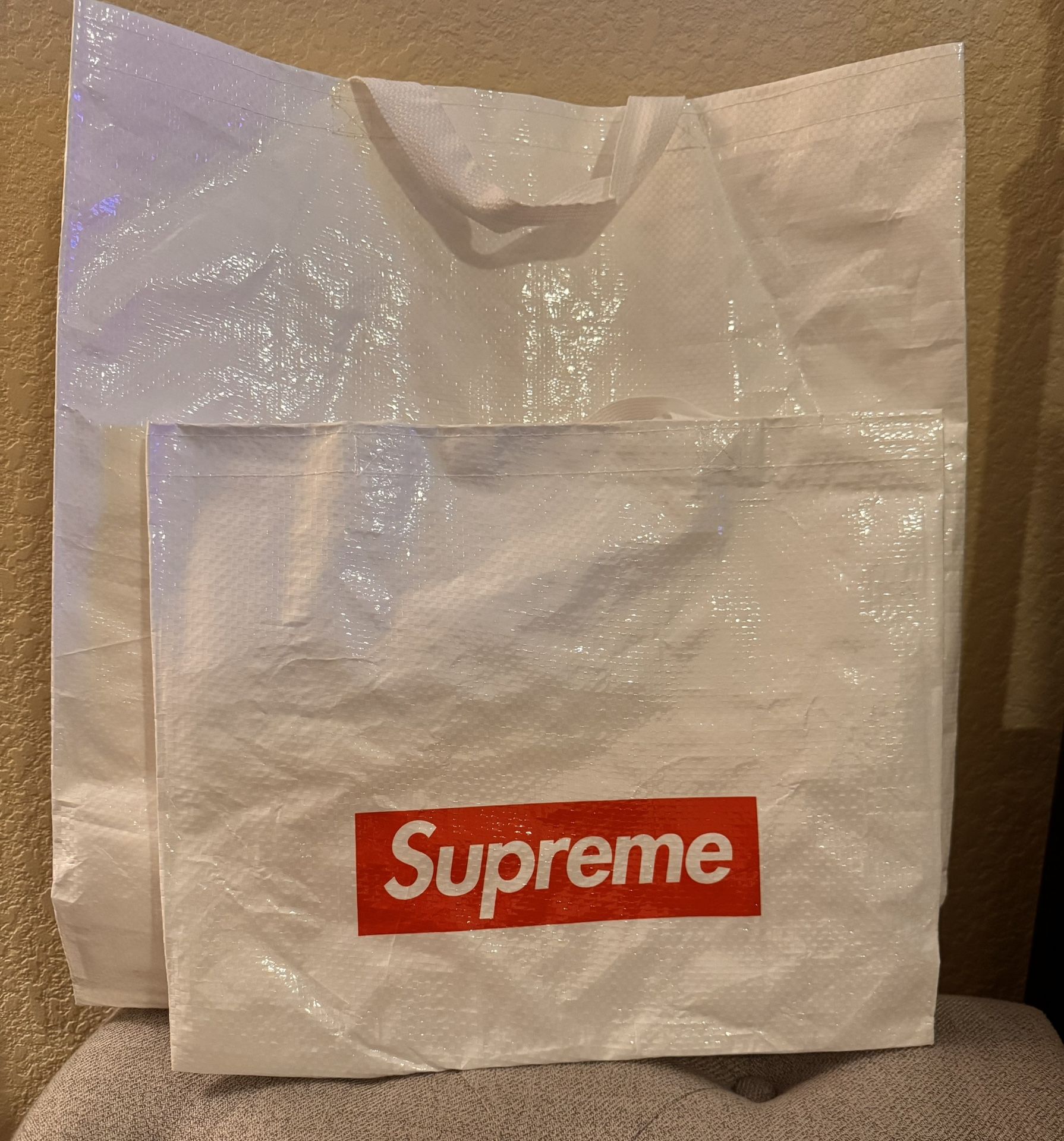 2 empty bags from recent purchases in San Francisco 18”w x 19”h 14 1/2” w x l2”h