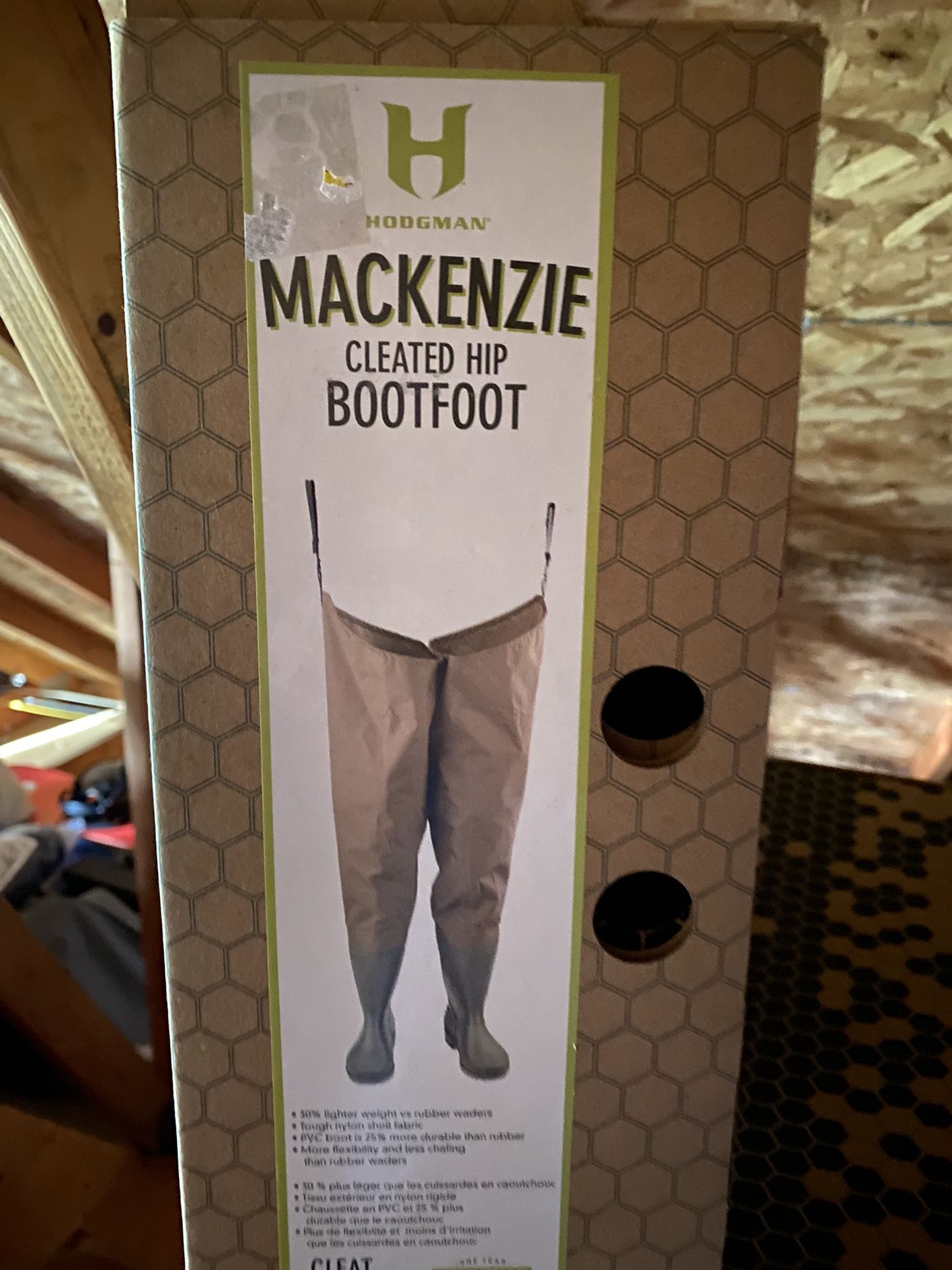 Brand new, I have (2) size 11 and (1) size 12 available. $30 each You don’t have to break the bank for a good pair of boot foot waders. Hodgman Mackenzie boot foot waders are constructed using rugged heavy denier PVC coated nylon which keeps water on the outside of your wader where it belongs. Additionally these waders are 30 percent lighter when compared to traditional rubber hip waders. The lightweight PVC boot with cleated outsole allows you to trek without being worn down by heavy rubber boots.