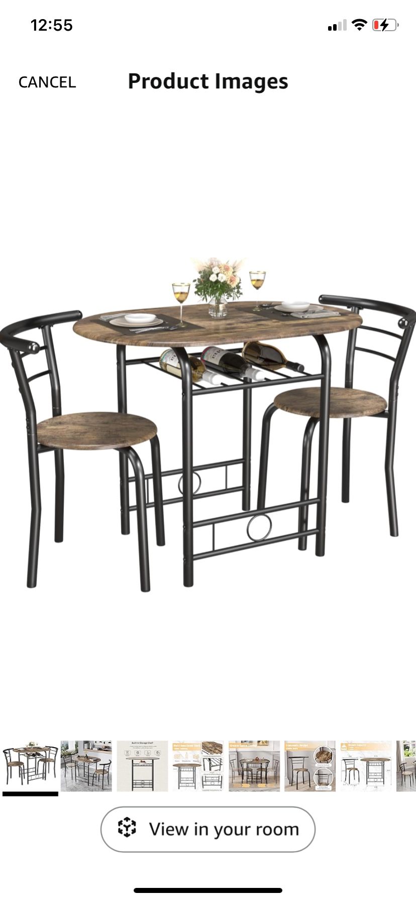 3 Piece Kitchen/BreakfastTable And Chairs W/ Wine Rack /Space Saving
