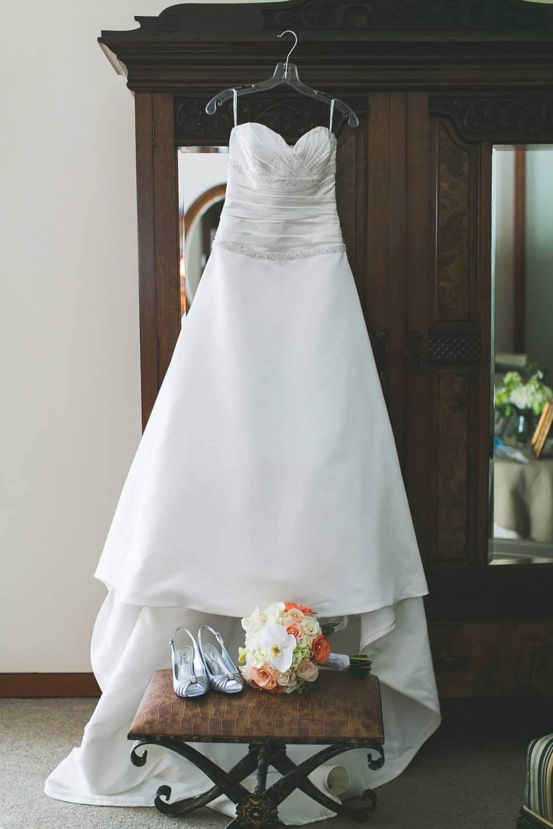 My wife is selling her Ivory dress by Enzoani Aberdeen. Worn once, no damage, professionally cleaned and pressed. It just took her forever to decide to sell it. $300 OBO
