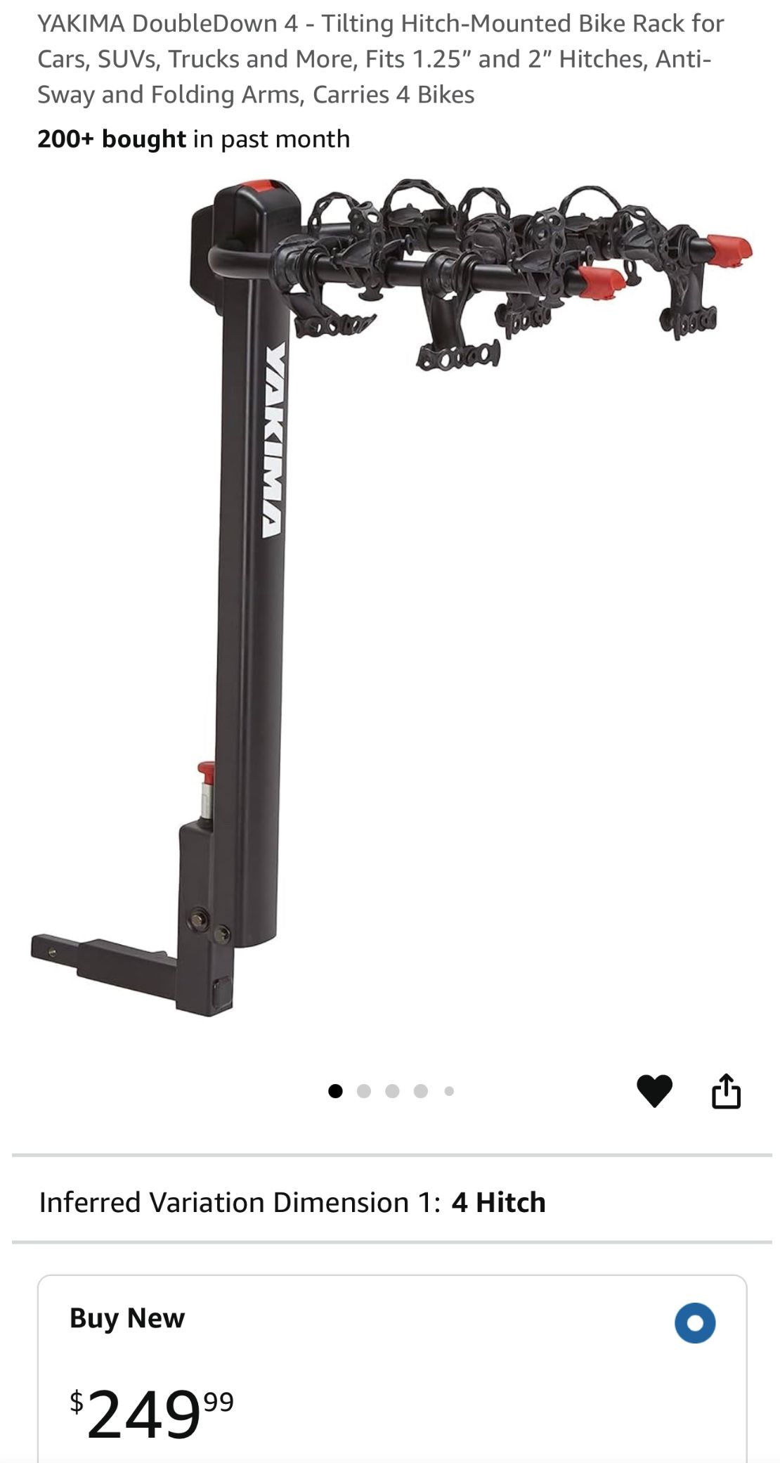 - 4 bike rack capacity - Lockable Hitch with key - Tilting Hitch rack for trunk access - Fits 1.25” and 2” hitches Great bike rack! Easy to use, easy to install. No issues with the rack, everything is in good working condition. $250 if purchased new.