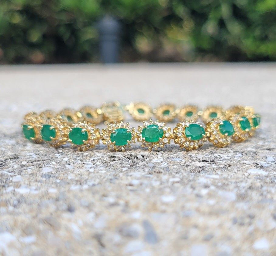 14K Gold 7 CT Emerald 1.5 CT Diamond Bracelet (Includes Jewelry Box)