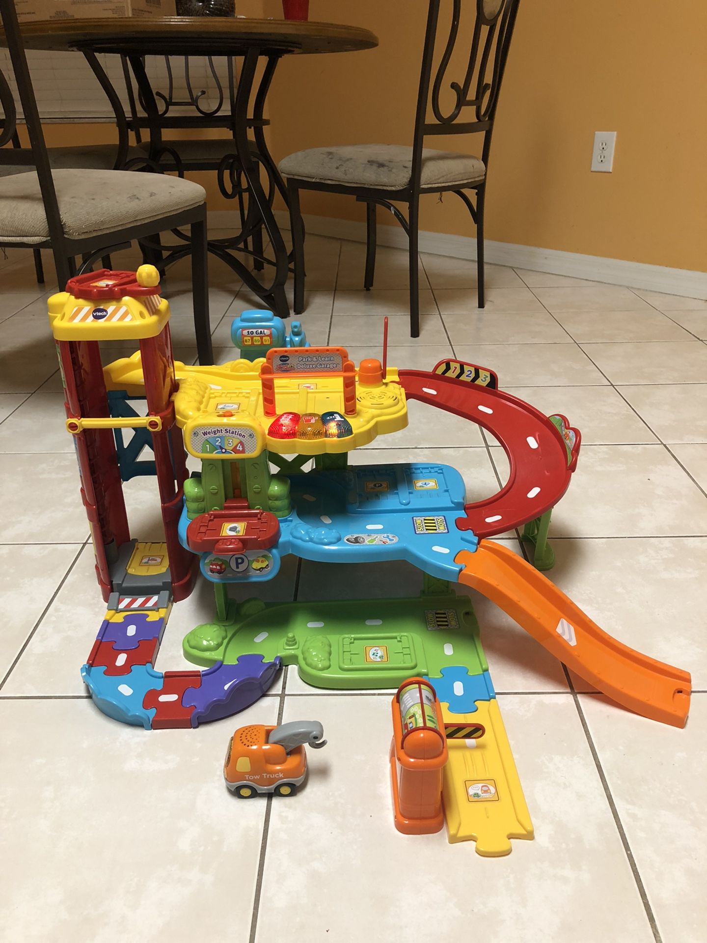 VTech Go Go Park & Learn Deluxe Garage complete set, lights and sounds works, Tow Truck works Local pick up available, Wesley Chapel, FL