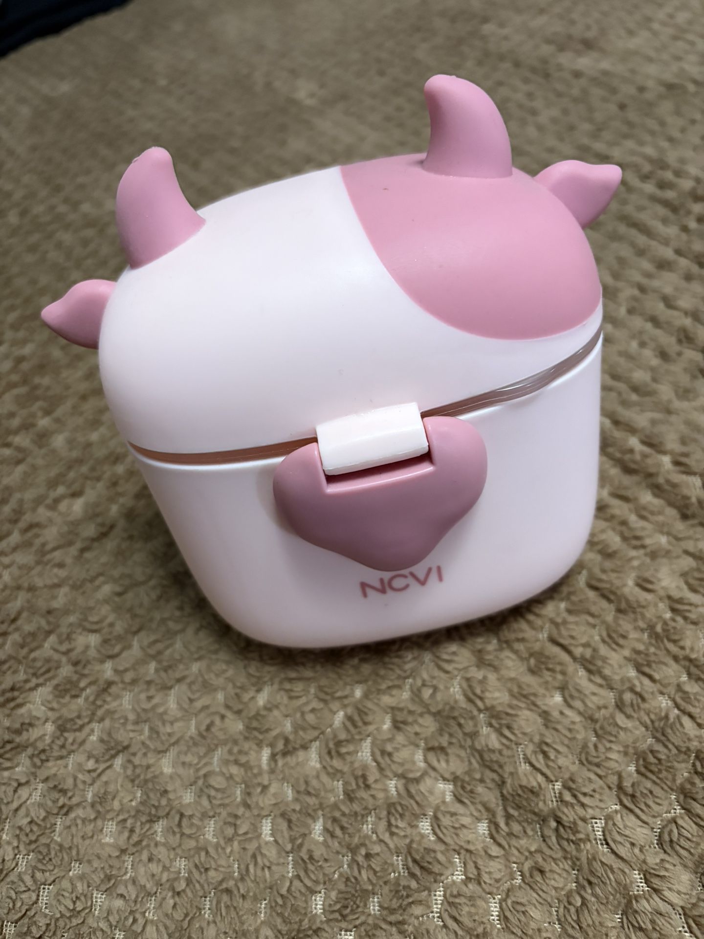Cute NCVI baby formula dispenser. Has a fun pink cow shape. Great for on the go, holds about 47fl oz/236g formula. Also good for snacks or candy when traveling. Hardly use