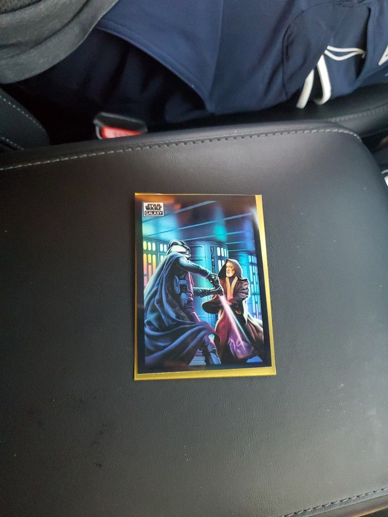Newly opened and immediately sleeved perfect condition Topps Star Wars Galaxy 2022 Darth Vader VS. OBI-Wan Kenobi Refractor. Super fast shipping!