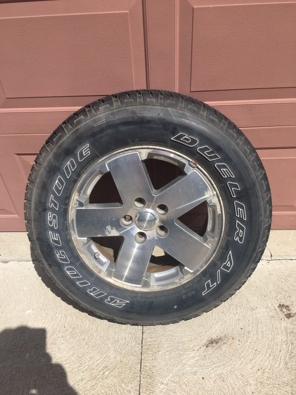 (4) 18" rims and tires off 2009 jeep jk. tires do not have much tread but hold air perfectly and have TPMS.