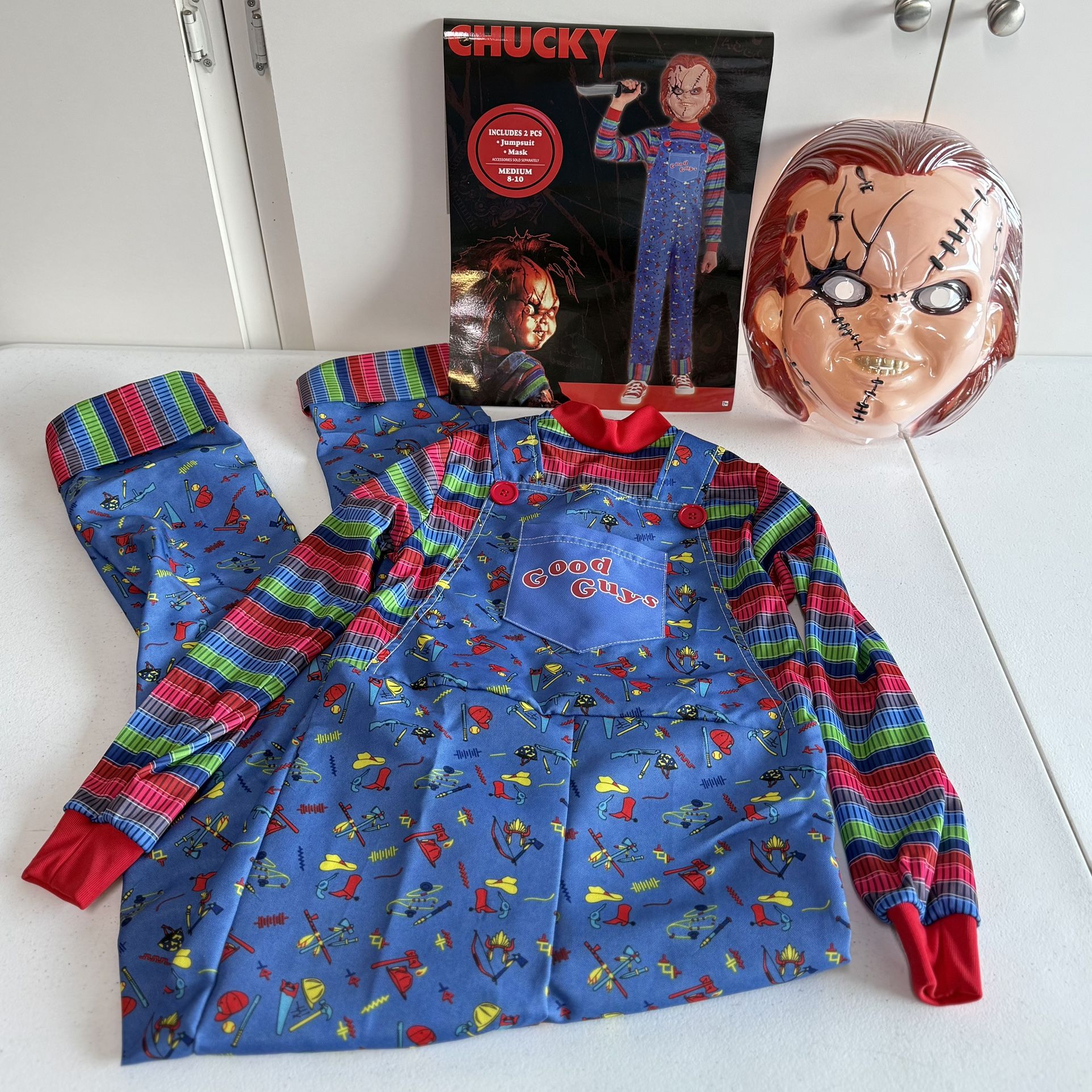 Chuckie costume size medium (8-10) kids includes 2pcs jumpsuit & mask. Excellent condition.