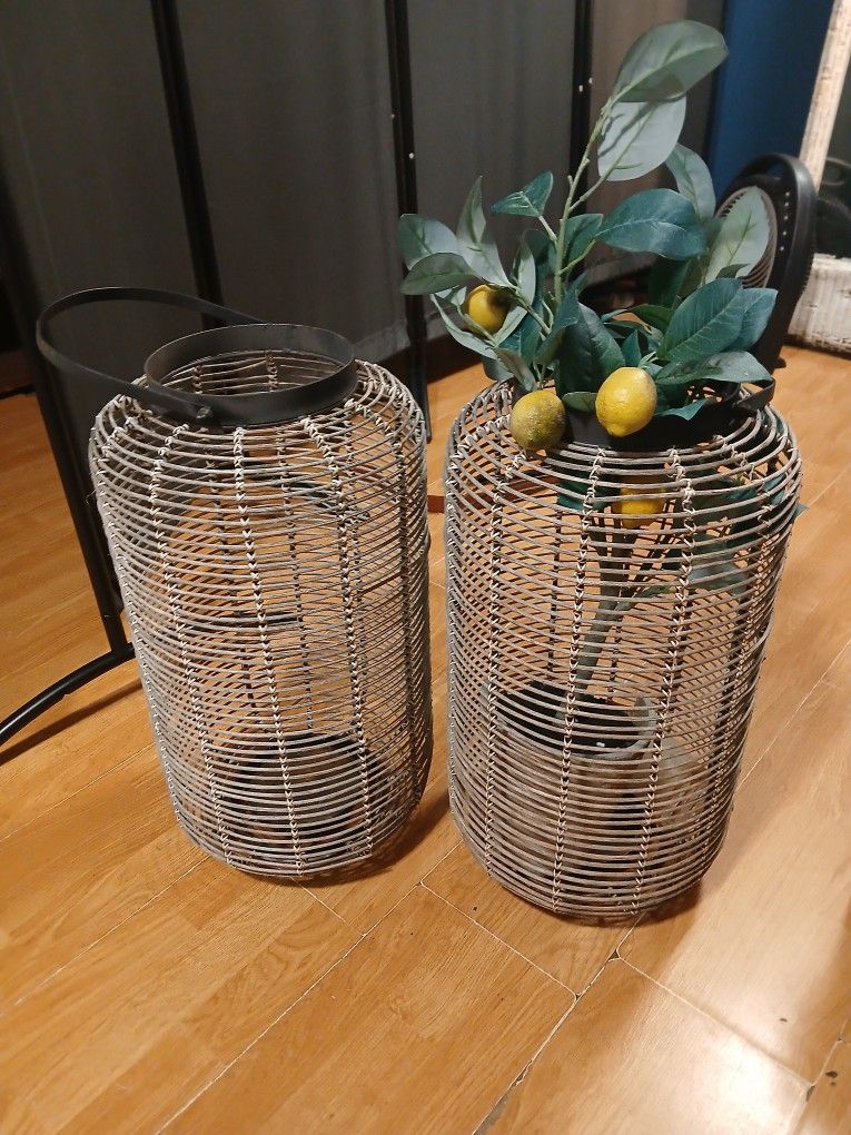2 large wicker lanterns. Can hold plants or LED candles